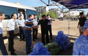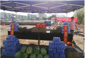 烈日下的八一大橋項(xiàng)目現(xiàn)場(chǎng)一片繁忙景象,工人們有的在支模、有的在焊接鋼筋、有的在澆筑砼,一切都井然有序,忙而不亂。屯溪區(qū)區(qū)委書記江善良一行一到現(xiàn)場(chǎng),就將一件件防暑降溫慰問品遞到在施工的工人們手中,并囑咐在高溫下施工的操作人員要多注意休息、及時(shí)補(bǔ)充水分和營(yíng)養(yǎng),按項(xiàng)目部要求合理安排工作時(shí)間,避免中午高溫時(shí)間段施工,同時(shí)要求項(xiàng)目部積極做好防暑降溫工作,保障施工一線工人的生命安全。充分體現(xiàn)了屯溪區(qū)委、區(qū)政府等領(lǐng)導(dǎo)對(duì)我集團(tuán)公司的一片深情厚誼和關(guān)懷。