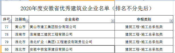 近日,安徽省住建廳傳來喜訊,2021年度安徽省優(yōu)秀建筑業(yè)企業(yè)評選結(jié)果已出爐,黃山市建工集團榮獲2020年度安徽省優(yōu)秀建筑業(yè)企業(yè)---建筑工程施工總承包類優(yōu)秀建筑業(yè)企業(yè)。