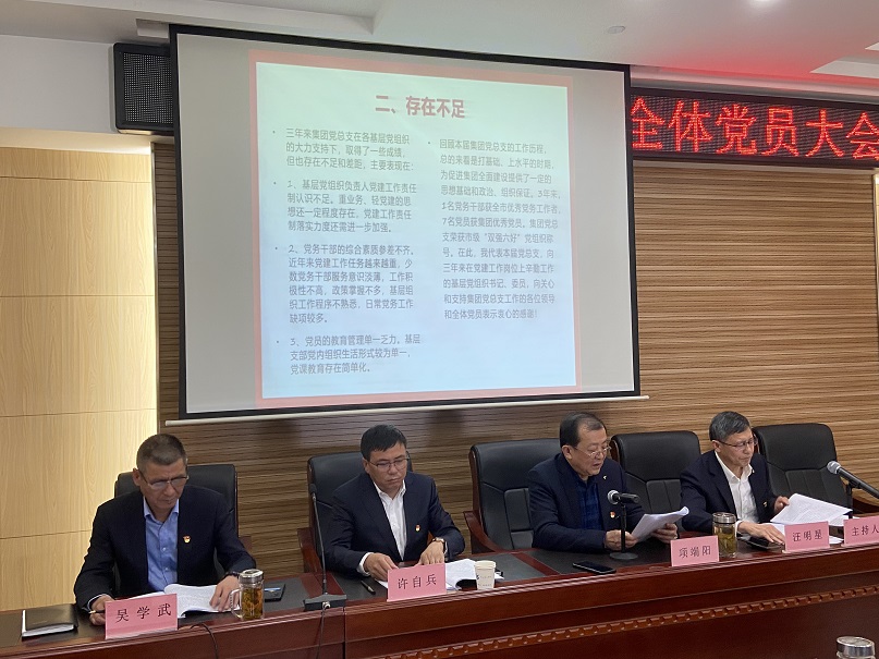 在莊嚴(yán)肅穆的國(guó)歌聲中,集團(tuán)公司黨總支換屆選舉拉開了序幕。按照既定會(huì)議流程,集團(tuán)黨支部書記項(xiàng)端陽(yáng)首先在圍繞政治建設(shè)、思想建設(shè)、組織建設(shè)、作風(fēng)建設(shè)、廉政建設(shè)和黨建深化與創(chuàng)新等方面系統(tǒng)地回顧了近幾年來(lái)的工作,分析了黨建工作面臨的形勢(shì)與存在的問(wèn)題。同時(shí)對(duì)下一屆集團(tuán)黨總支工作提出了五點(diǎn)建議。經(jīng)過(guò)全體黨員認(rèn)真審議,通過(guò)了總支書記項(xiàng)端陽(yáng)同志所做的報(bào)告。