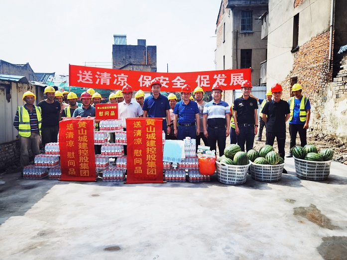 烈日炎炎,氣溫居高不下。為保障項目職工安全健康權(quán)益,確保項目安全生產(chǎn)平穩(wěn)推進,8月10日上午,黃山城投城建控股有限公司總經(jīng)理汪國文等一行赴寧國市河瀝文化街區(qū)EPC項目工地開展走訪調(diào)研暨“夏送清涼”慰問活動。黃山建工集團股份有限公司董事長項端陽、總經(jīng)理葉金發(fā)、副總經(jīng)理吳學武陪同調(diào)研慰問。
